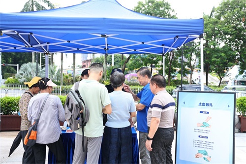 10月13日上午,南山区组织“应急第一响应人”导师来到华夏街社区益田假日东广场开展互动体验活动,现场悬挂宣传横幅、发放防灾减灾知识折页,设置六大实操技能体验区与游戏互动环节,吸引百余位居民踊跃参与,现场氛围热烈。