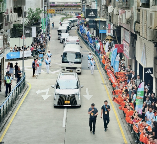 在香港的火炬传递中,广汽传祺E9 PHEV作为指挥车,全程护航火炬传递,确保每一棒交接精准有序。此外,依托丰富的“右舵车”制造经验,广汽还为香港、澳门赛区提供定制的“右舵版”全球化赛事用车广汽传祺E9 PHEV和昊铂HT作为服务用车,将全程以低碳、绿色出行方式为赛事保驾护航。