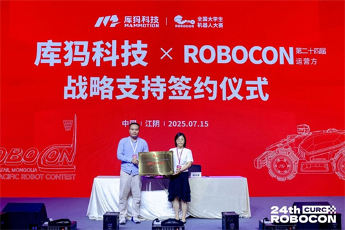 7月15日,在2025年ROBOCON全国机器人大赛现场,库犸科技作为战略支持伙伴宣布捐赠400万元支持赛事发展,持续践行对机器人生态建设的长期承诺。