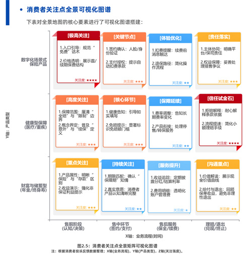 在“消费者关注点全景地图”中,复旦大学保险消费者权益保护研究团队也对行业中的头部保险机构进行了横向对比和全方位测评,所入选的行业优秀服务案例对行业具有参考和样本意义。